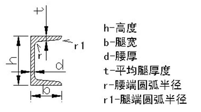 槽鋼是截面為凹槽形的長條鋼材。其規(guī)格以腰高(h)*腿寬(b)*腰厚(d)的毫米數(shù)表示,如120*53*5,表示腰高為120毫米,腿寬為53毫米的槽鋼,腰厚為5毫米的槽鋼,或稱12#槽鋼。腰高相同的槽鋼,如有幾種不同的腿寬和腰厚也需在型號右邊加a b c 予以區(qū)別,如25a# 25b# 25c#等。